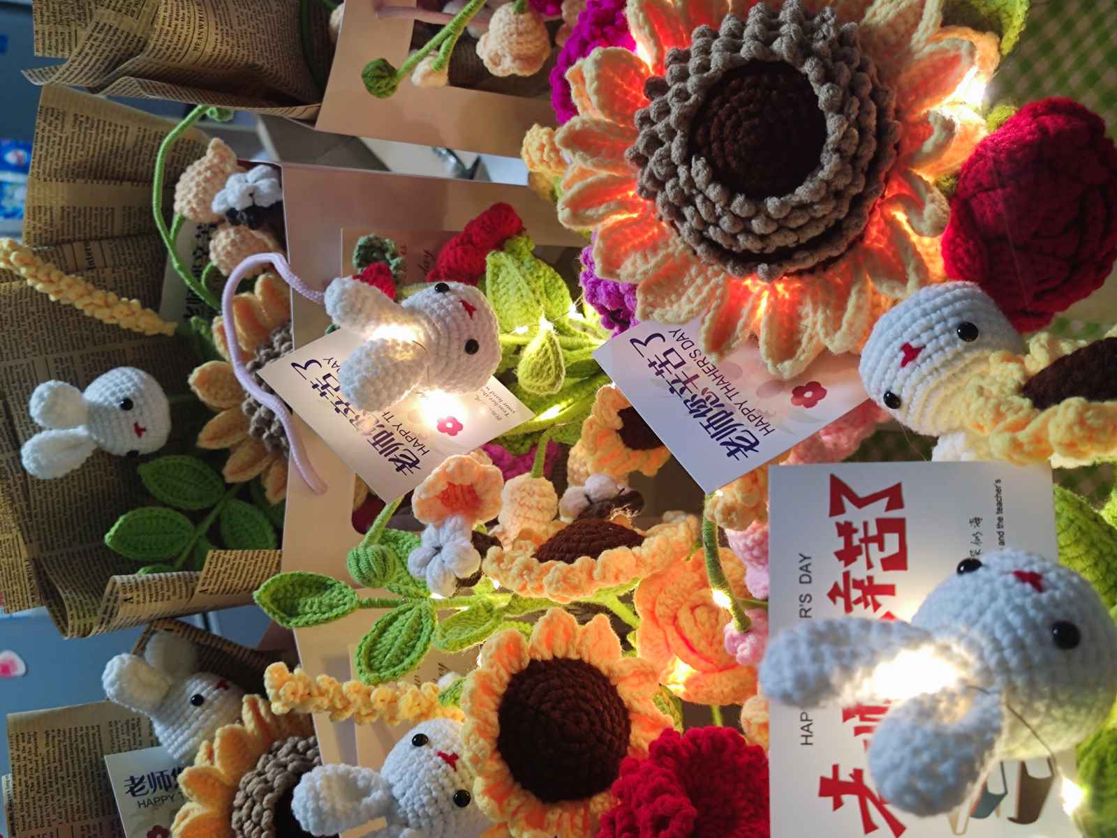 每一团毛线、每一枚钩针,都是他们与世界对话的工具。那些精致的钩织作品,从可爱挂饰到仿真花卉,从萌趣玩偶到实用杯垫,凝聚着耐心与巧思,是独属于他们的艺术表达。